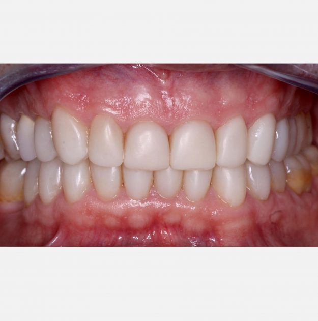 Paciente de 54 años de edad acude con grandes abrasiones dentales que son una combinación de bruxismo y una dieta rica en ácidos. En primer lugar se realizó un blanqueamiento dental para establecer el color base de las piezas. Posteriormente se realizaron reconstrucciones de composite en todas las piezas dentales sin ni siquiera tallarlas, todo…