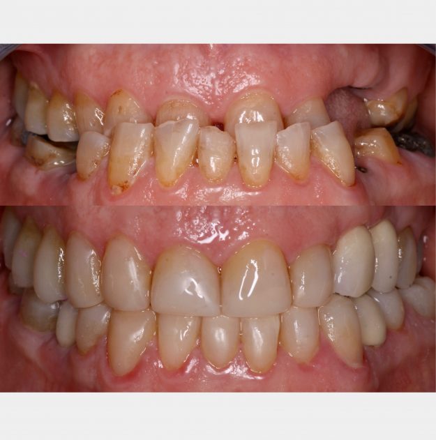 Paciente de 73 años que acude con mordida en tijera anterior y gran destrucción de piezas dentarías y ausencia de varias de las mismas. Se procede a una rehabilitación mínimamente invasiva con composite de manera adhesiva, donde las piezas restantes prácticamente no necesitan tratamiento y nos asegura reversibilidad si hubiera algún problema en el futuro.…