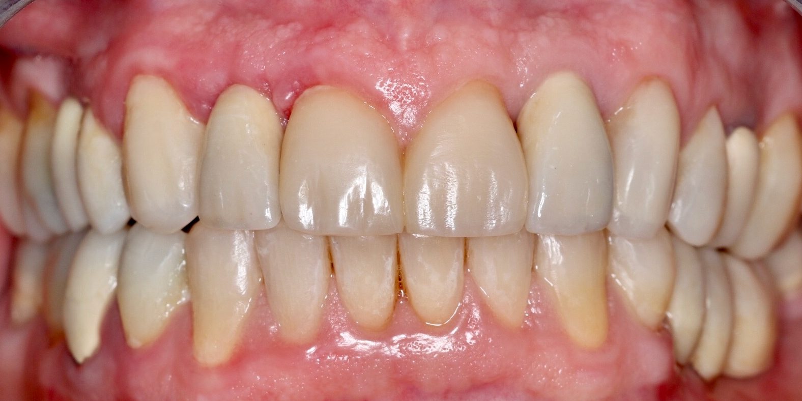 La Dra. Elena Granado decidió hacer una rehabilitación total con técnica adhesiva en las piezas remanentes y con implantes en las piezas ausentes.